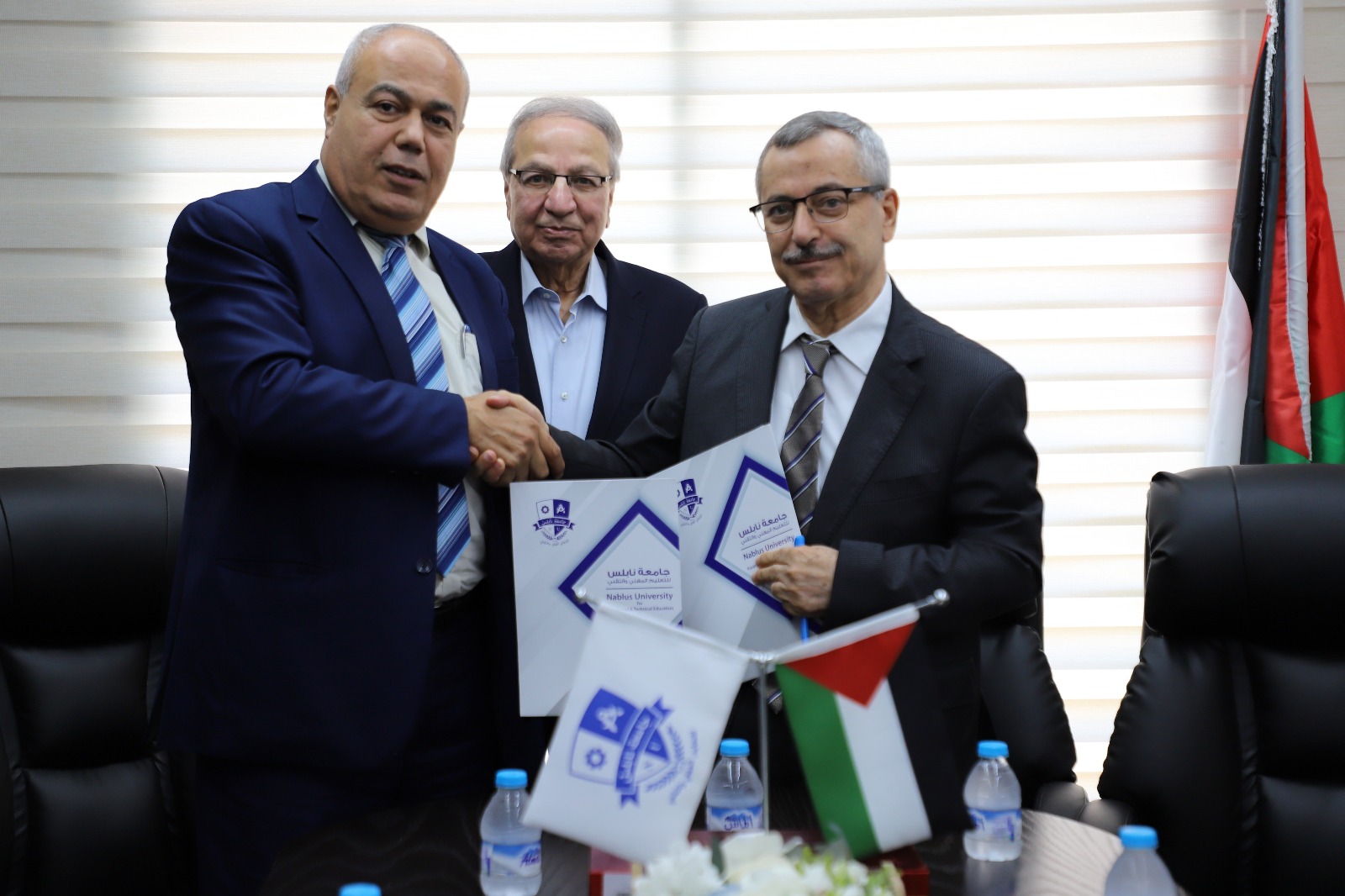وقّعت جامعة نابلس للتعليم المهني والتقني، ممثلة برئيس الجامعة د. ضرار عليان، اتفاقية تعاون مع رئيس مجلس إدارة مجموعة مستشفيات العربي د. سالم أبو خيزران، تقضي بتقديم خمس منح دراسية كاملة لطلبة برنامج الفيزياء الطبية،