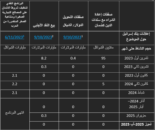 أصدر بنك اسرائيل التحديث الشهري بشأن حجم الأنشطة ضمن البرامج التي أطلقها البنك منذ اندلاع الحرب، حتى تاريخ 31/08/2025 .