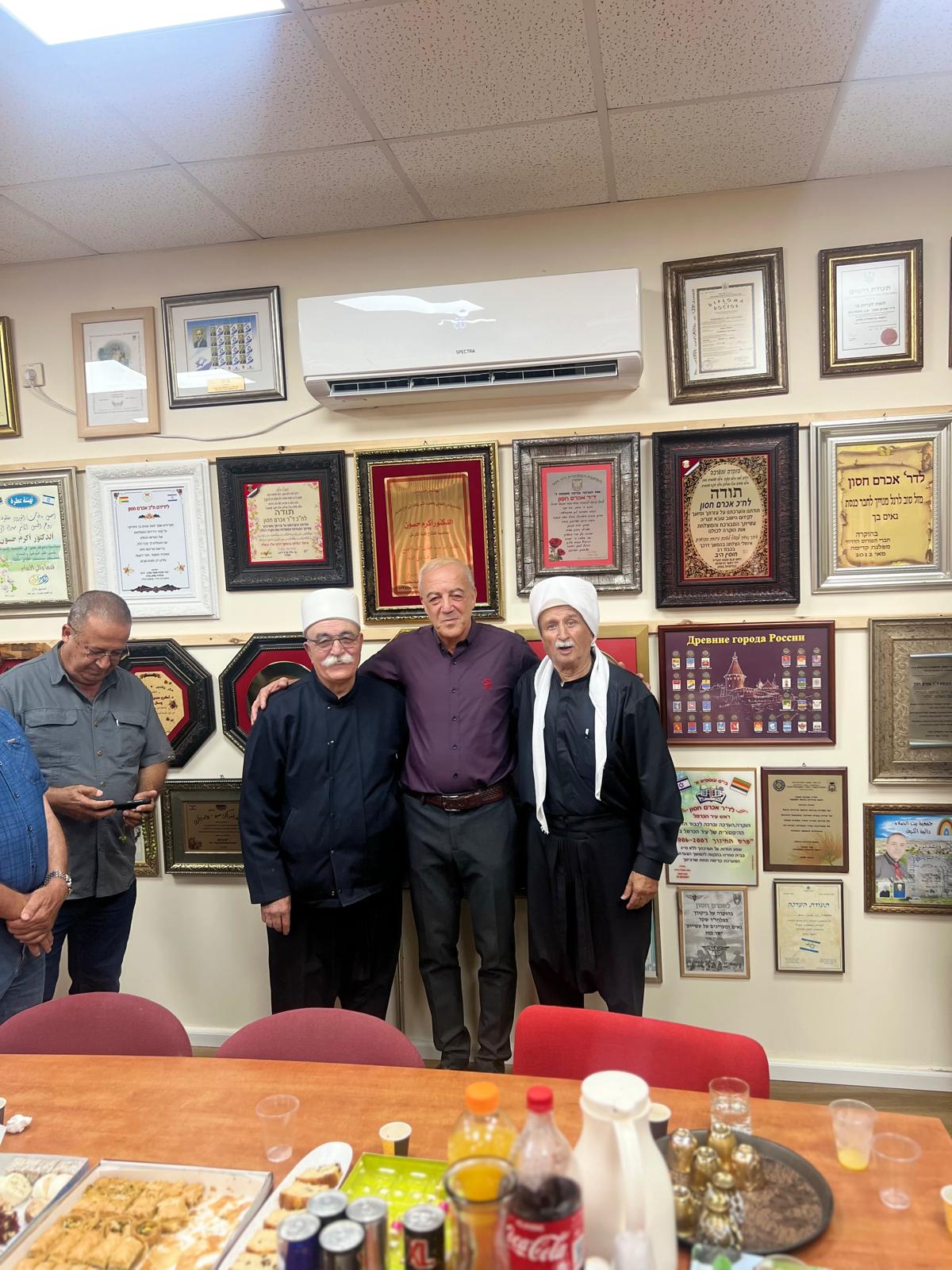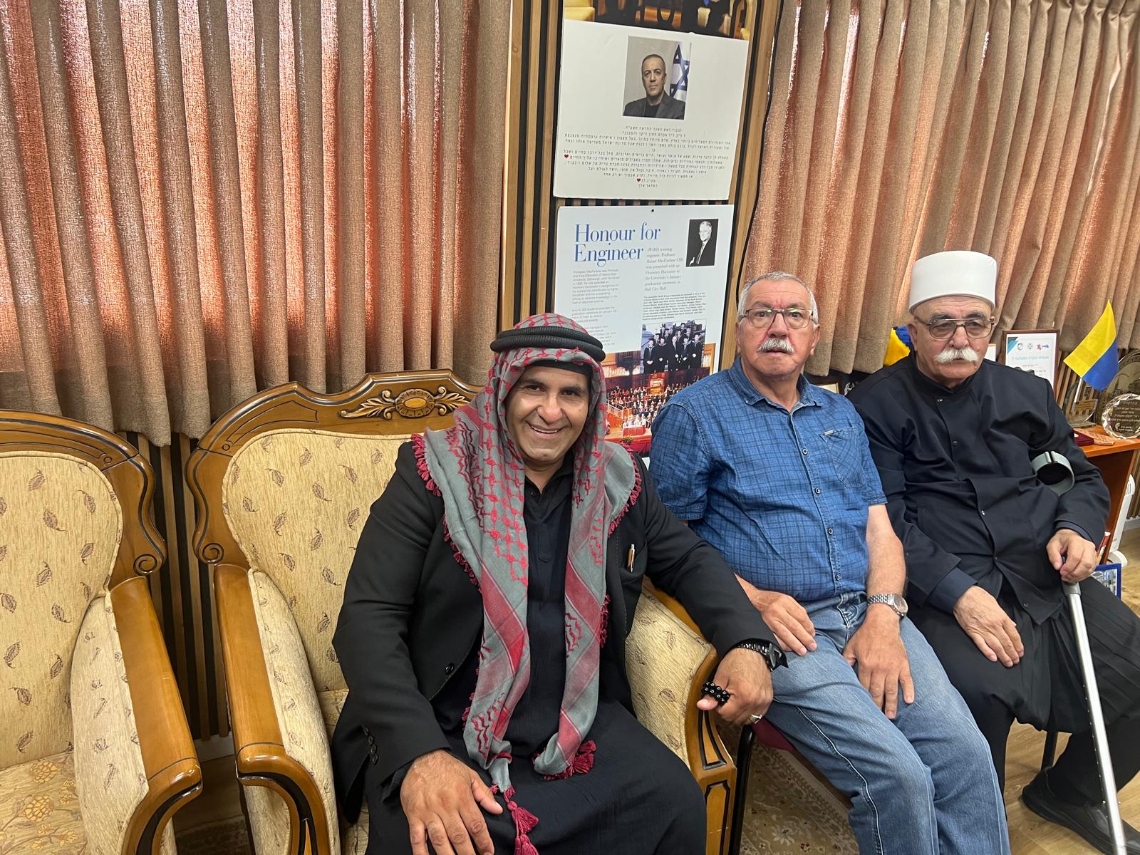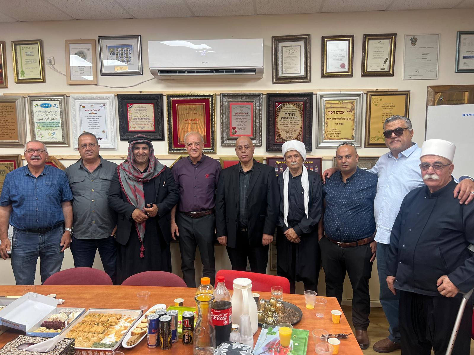 وكان في استقبال الوفد لفيف من الشخصيات والمشايخ الافاضل من أبناء الطائفة المعروفية الدرزية، وكان الاستقبال والترحيب مليئا بالمحبة والمودة والابتسام والاحترام ، حيث رحب عضو الكنيست أكرم حسون بالوفد الكريم وأكد على أهمية اللقاء المميز .