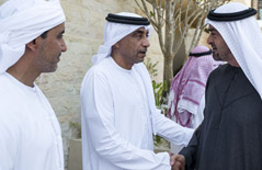 رافق سموه خلال أداء واجب العزاء، سمو الشيخ حمدان بن محمد بن زايد آل نهيان نائب رئيس ديوان الرئاسة للشؤون الخاصة وعدد من كبار المسؤولين.